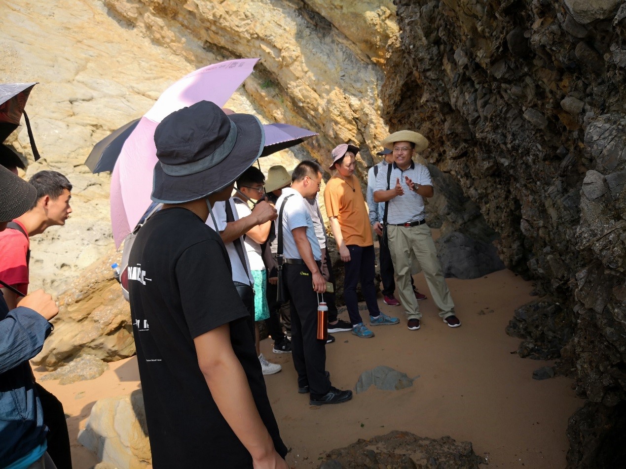 在实习基地,姜纪沂院长顶着烈日到野外考察了实习区地质环境。在考察现场姜纪沂就实习区的地质构造、分层和岩性等方面为师生进行了系统的讲解,并针对学生提出的地质问题进行了详细的解答和分析,同时在地质物性特征与地球物理勘探方法的结合方面与师生进行了有益的探讨,使学生认识到地质知识的掌握对于地球物理勘探资料解释的重要性。在与实习指导教师的交流中,姜纪沂院长详细了解了地球物理勘探野外实习内容安排、学生实习要求、基地生活条件、实习安全等工作,并就实习场地安排、实习组织、实习生活和安全保障等方面提出相关要求和建议。