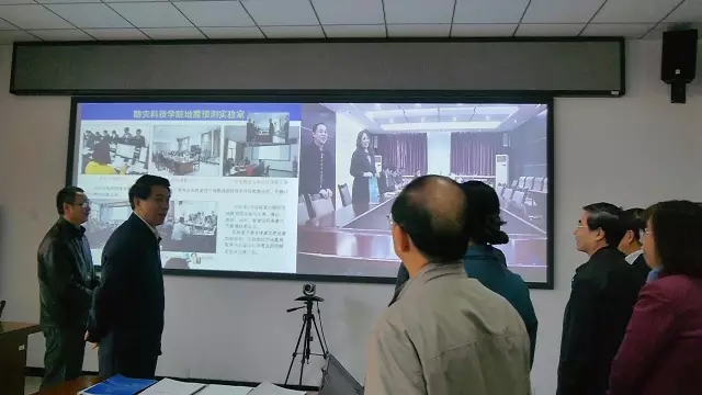 在灾害模拟实验室听取汇报