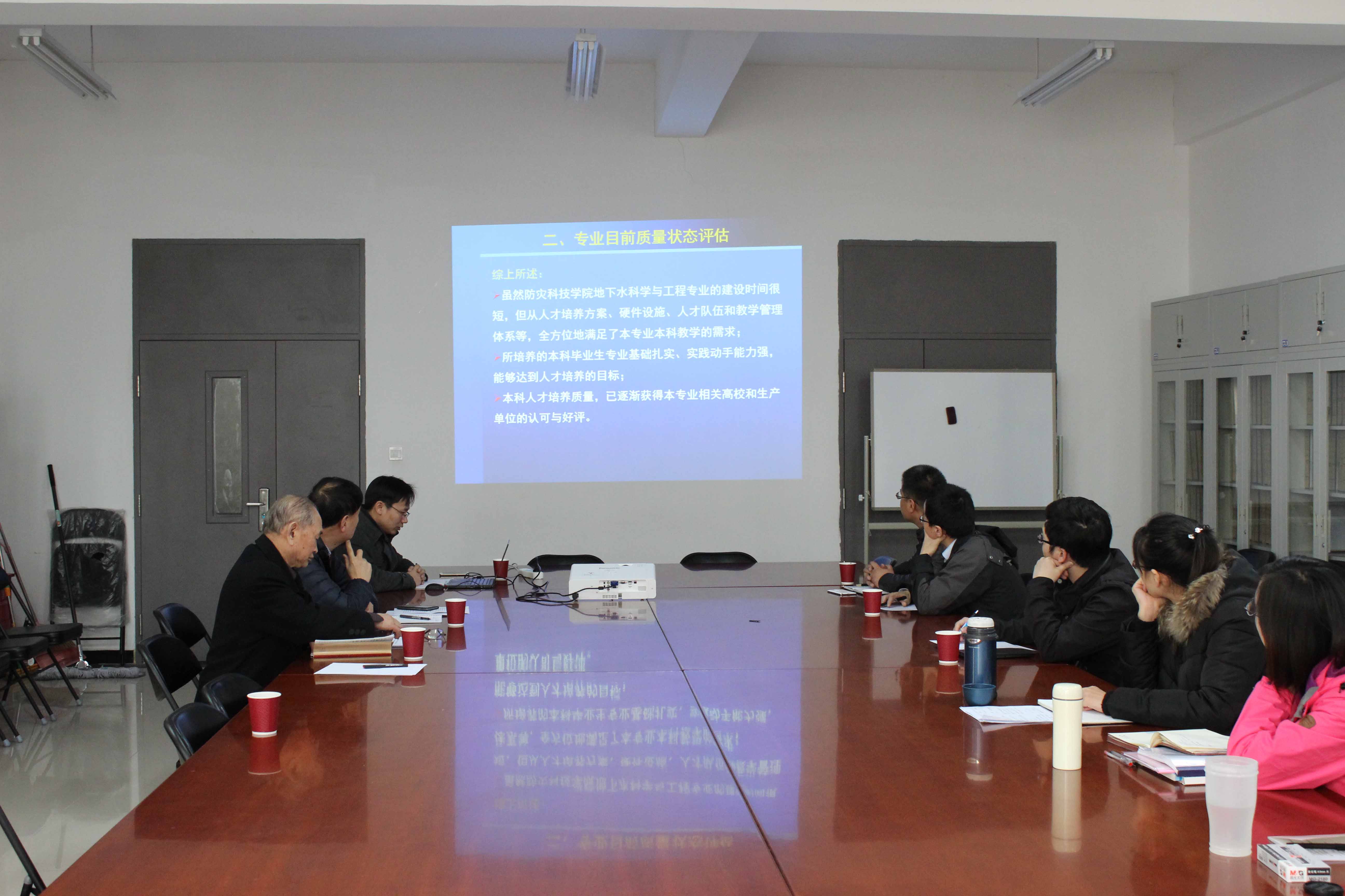 25日下午,在地科系会议室,专家组对地下水科学与工程专业建设质量评估及提升方案进行总结汇报,充分肯定了近年来该专业建设所取得的成绩。虽然防灾科技QY千亿国际地下水科学与工程专业的建设时间很短,但从人才培养方案、硬件设施、人才队伍和教学管理体系等,全方位地满足了本专业本科教学的需求;所培养的本科毕业生专业基础扎实、实践动手能力强,能够达到人才培养的目标;本科人才培养质量,已逐渐获得本专业相关高校和生产单位的认可与好评。同时,专家组也提出了存在的问题并给出质量提升建议,例如,课程设置应与人才培养目标和专业特色相适应;实验条件应与教学需求相配套,进一步加强师资队伍建设,提高毕业论文质量,建议大力开展课程建设并加强实践教学研究与管理。最后专家组与地下水科学与工程专业教师进行座谈,针对具体专业课程的问题进行交流,对具体课程提出建议。