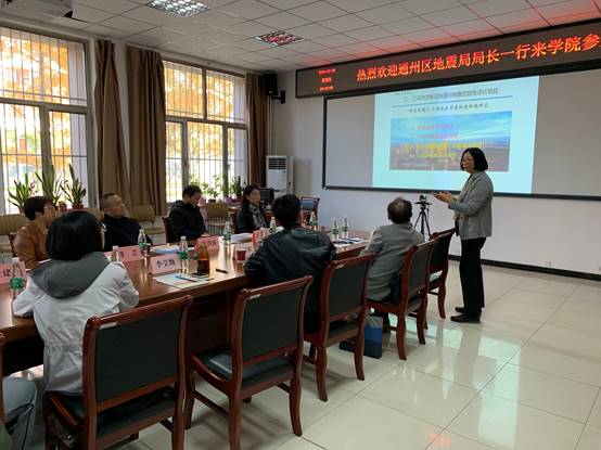10月30日上午,通州区地震局局长陈洪波一行7人来QY千亿国际调研交流。QY千亿国际副院长孙珍军热情接待并召开座谈会。防灾科技公司董事长余中元以及QY千亿国际部分教师参加了座谈。