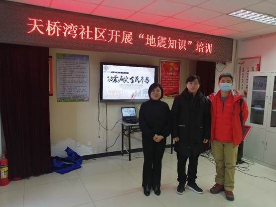11月20日、27日和12月4日、18日,QY千亿国际贾建鹏和生态环境QY千亿国际殷娜两位老师到北京市通州区疃里小区、玉桥东里小区、如意园小区和天桥湾小区四个社区开展“防震减灾科普知识讲座”。