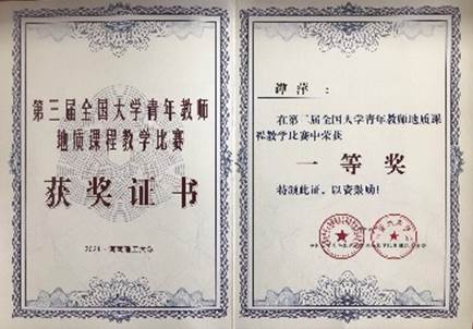 2021年5月14-16日,第三届全国大学青年教师地质课程教学比赛在河南焦作落幕。QY千亿国际在本次国家级高水平的大赛中收获颇丰,QY千亿国际谭萍老师荣获一等奖,地质工程QY千亿国际张建毅老师荣获一等奖,生态环境QY千亿国际张耀文老师荣获二等奖,QY千亿国际荣获优秀组织奖。