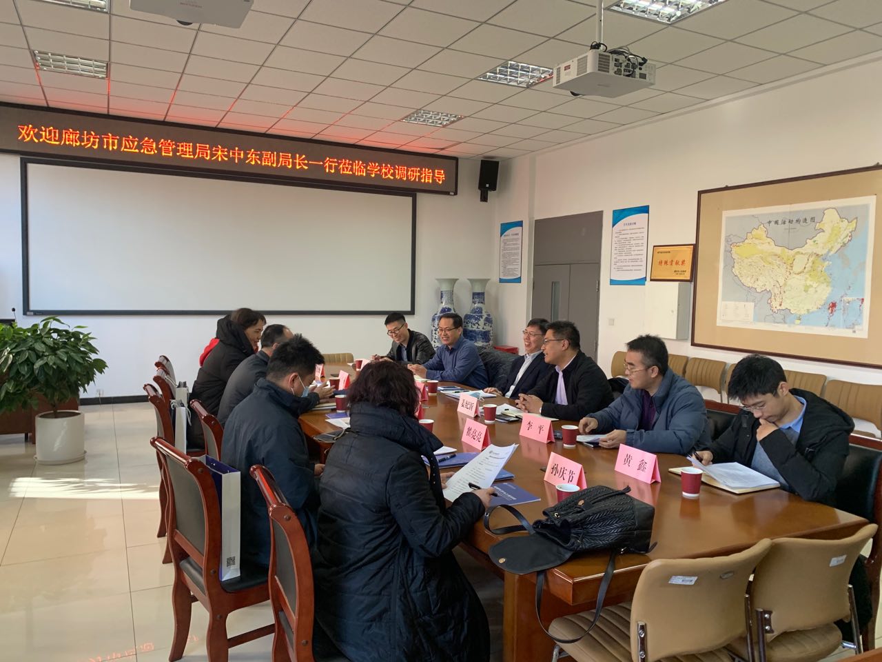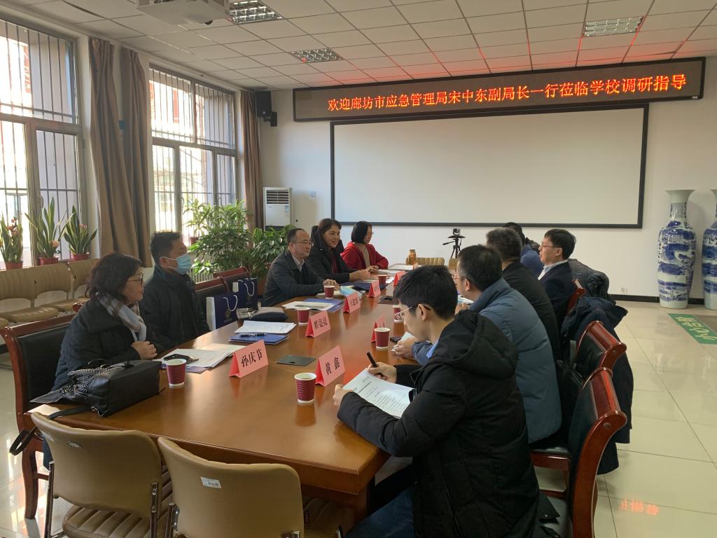 12月16日上午,廊坊市应急管理局宋中东副局长,地震监测预报中心、地震和地质灾害防御救援科等部门主要负责人一行到QY千亿国际调研交流。QY千亿国际主持党委工作副书记石峰在北校区地震会商室热情会见来访人员,并围绕深化合作关系、拓展合作领域、共谋事业发展开展了座谈交流,QY千亿国际、地质工程QY千亿国际、应急管理QY千亿国际、科研处相关负责人参加了座谈。座谈会由QY千亿国际院长姜纪沂主持。
