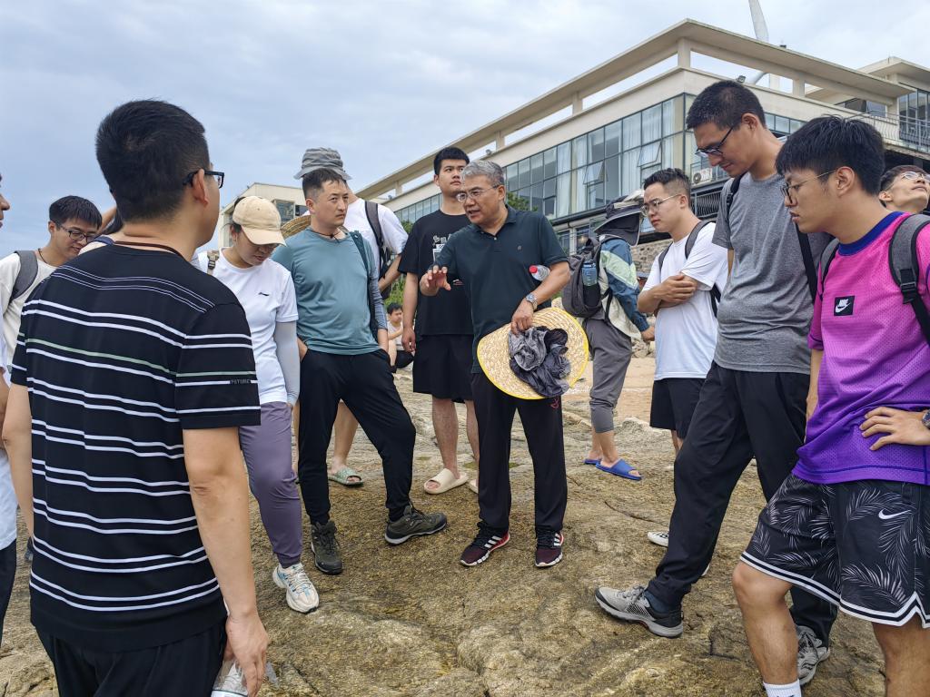 29日上午,任云生一行与全体师生一起前往台里野外地质实习路线,为同学们现场讲解变质深成岩与正常侵入岩、岩石的变质变形特征、不同期次岩浆侵入作用以及海蚀作用和海貌的相关知识,讲授岩矿鉴定和地质现象的观察描述方法等。29日下午,任云生带领黄金海岸教学基地负责人与吉林大学兴城教学基地负责人及相关工作人员就教学基地的目标定位与日常管理、改革发展与建设思路、人事制度与财务管理等事宜进行了充分研讨,为QY千亿国际黄金海岸教学基地的建设与发展提供了宝贵经验。