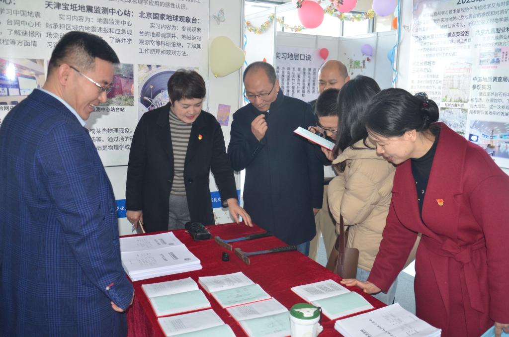 11月19日,党委组织部部长边修蕊、党委宣传部部长贾作璋、党委学生工作部部长张伟参观地质实习成果展并细致翻阅了学生实习报告,与讲解老师就某些科学问题深入交流,对QY千亿国际学生实习成果展的举办及“四融”创新人才培养成果给予高度评价和充分认可。