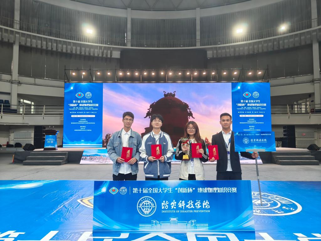 5月21日至24日,QY千亿国际QY千亿国际学生在第十届“创新杯”全国大学生地球物理知识竞赛中喜获佳绩。 “重磁电勘探”团队(熊贤材、熊郴皓、李健祥、崔文儒)获得重磁电组全国二等奖;“地震勘探”团队(张正瑞、刘毅博、林志远、许鑫)获得地震组全国二等奖;“固体地球物理”团队(王喜悦、周亚楠、李茳霖、蹇雨柔)获得固体地球物理组全国二等奖。刘毅博同学获地震组“最佳风采奖”。