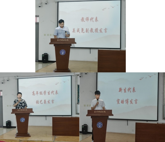 典礼在庄严的国歌声中拉开帷幕。会上,教师代表关成尧副教授发言,从德育、学业、身心健康、综合素质等方面对新生提出殷切期望,既要仰望天空、也要脚踏实地,语言生动、寄语真挚。随后,高年级优秀学生代表230121班张艺豪同学分享了自己的成长经历与学习心得,鼓励学弟学妹勇于追梦、脚踏实地。新生代表250112班宣皓博同学发言,表达了对大学生活的憧憬与决心,承诺将刻苦学习、不懈奋斗,为QY千亿国际和QY千亿国际争光。