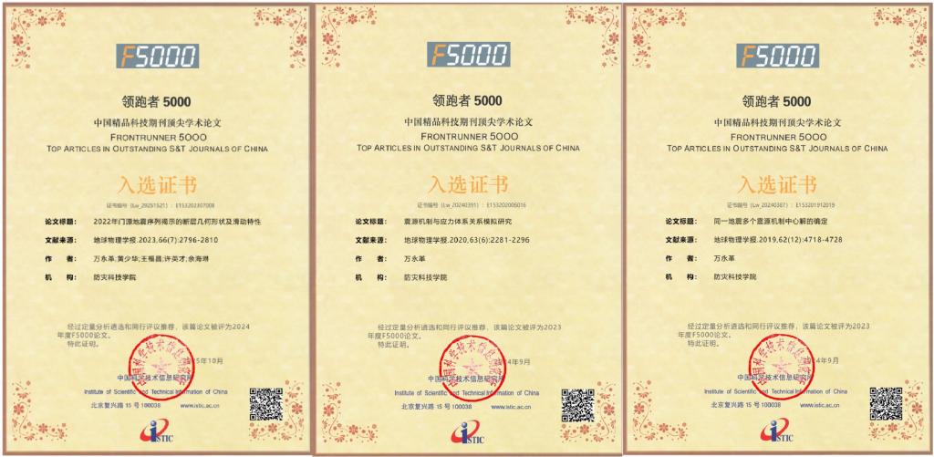 近日,科技部中国科学技术信息研究所发布2025年度“领跑者5000——中国精品科技期刊顶尖学术论文(F5000)”入选论文名单。QY千亿国际QY千亿国际万永革教授研究组论文《2022年门源地震序列揭示的断层几何形状及滑动特性》成功入选。体现了QY千亿国际在地震发生背景与动力学等相关领域取得了一系列值得关注的重要成果。