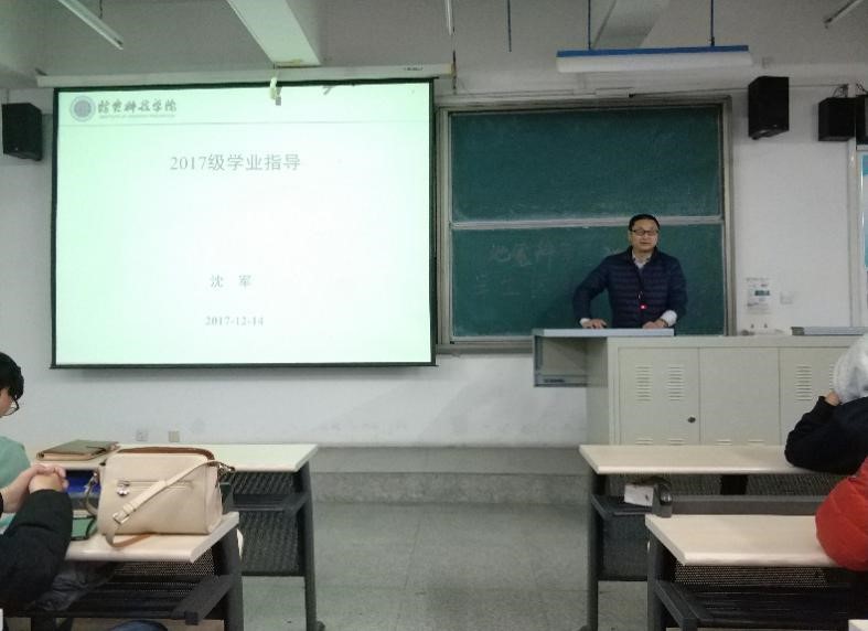 期中考试已经结束,由于同学们基础水平和接受能力有所差异,成绩也不尽相同,为了全面提高同学们的学习能力和自学意识,提供一个师生沟通的渠道,传授高效的学习方法,同时使系领导更好的掌握同学们的学习情况,2017年12月14日下午2:45,我系地质学、地下水科学与工程、地理科学专业的五个班级于5J21教室开展了“地震科学系2017级学生学业交流会”,出席此次活动的嘉宾有:地震科学系系主任沈军老师、地质教研室主任关成尧老师、地下水科学与工程教研室主任张莹老师、地理科学教研室主任石云老师,期间氛围融洽,同学们收获颇多。