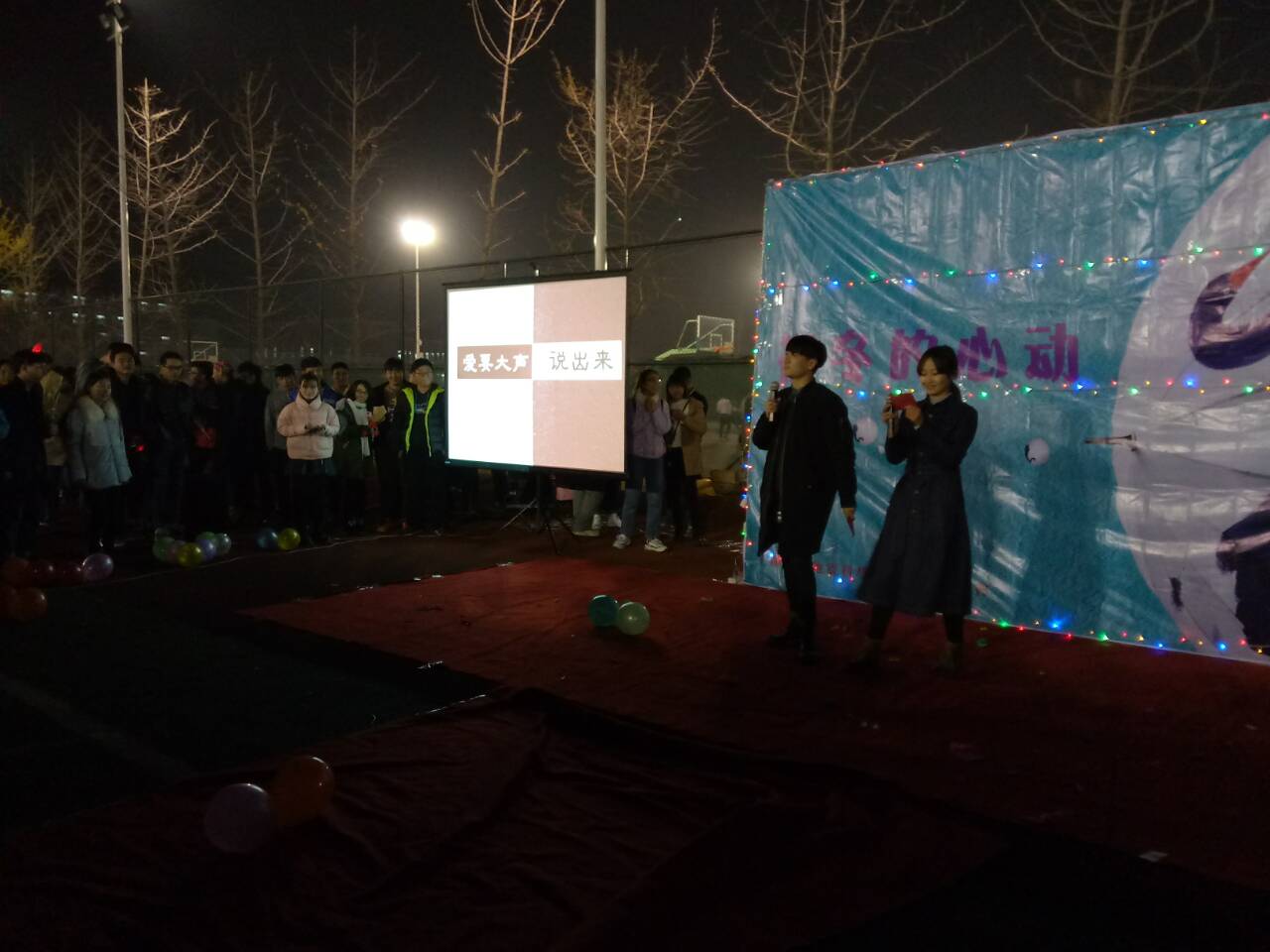 为了丰富同学们的大QY千亿国际园生活,让同学们释放青春活力,向广大师生展示我们大学生的风采,使同学们能够结识更多有趣的朋友,扩大同学们的交际面。2016年11月11日18:30,地震科学系学生会在QY千亿国际北校区足球场举办了“初冬的心动”双十一露天晚会。