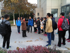 蒋老师兴致勃勃的为同学们讲解了南校区陈列岩石的相关知识。从南校区南门的岩石讲起,沿着校园小道一路走来,蒋老师对校园内的各种岩石的名称、种类、形成过程以及特点进行了详细的讲解。在思玄苑,蒋老师让同学们进行交流互动,一起讨论,现场气氛热烈。老师认真讲解、师生默契配合,表现了冬日里同学们对学习的积极性。