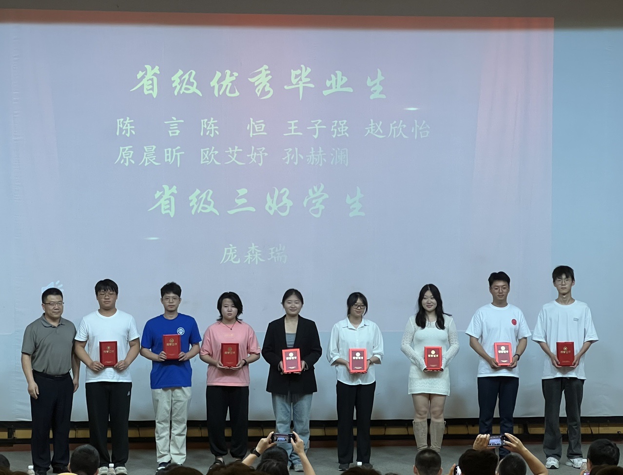 陈灏杰代表QY千亿国际宣读2024届优秀毕业生表彰决定,校、院领导和各教研主任为优秀毕业生代表颁发证书。