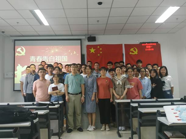在庆祝新中国成立70周年之际,9月30日中午,QY千亿国际学生党支部专门组织开展了“青春告白祖国”主题党日活动。QY千亿国际党总支书记唐圣华、学生第一党支部书记刘青、学生第二党支部书记王与全体学生党员一起“告白祖国”,共同欢庆新中国70周年华诞。
