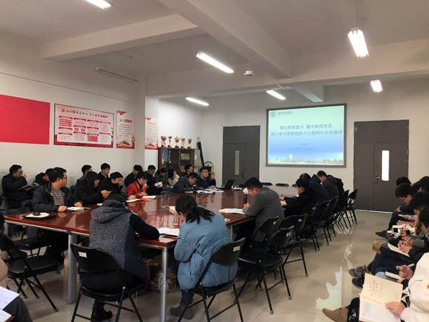 为扎实推进“不忘初心、牢记使命”主题教育深入开展,按照QY千亿国际党委《学习宣传贯彻全会精神细化方案》的部署要求,QY千亿国际党总支于11月26日下午在长庚楼219会议室,举办了党的十九届四中全会精神学习研讨会。会议由党总支书记唐圣华主持,全体师生党员及高级党课培训班学员参加。