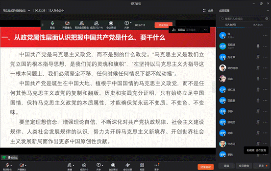 会前,党支部的各位同志们认真自学了“中国共产党是什么、干什么”的相关材料,并撰写了学习感悟和发言提纲。石砚斌同志在会上进行了领学,分别从政党属性层面、性质宗旨层面、国家民族层面、人类社会层面认识把握中国共产党是什么、要干什么,强调全体党员都要牢记中国共产党是什么、要干什么这个根本问题。“是什么”诠释党的性质宗旨和本质特征,“要干什么”昭示党的使命任务和奋斗目标。