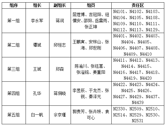 4.宿舍巡查,各组按照分区每天不定时进行宿舍巡查,密切掌握责任区内各宿舍同学在校状况,发现异常情况要及时向辅导员老师或QY千亿国际领导报告。