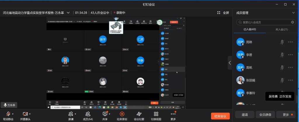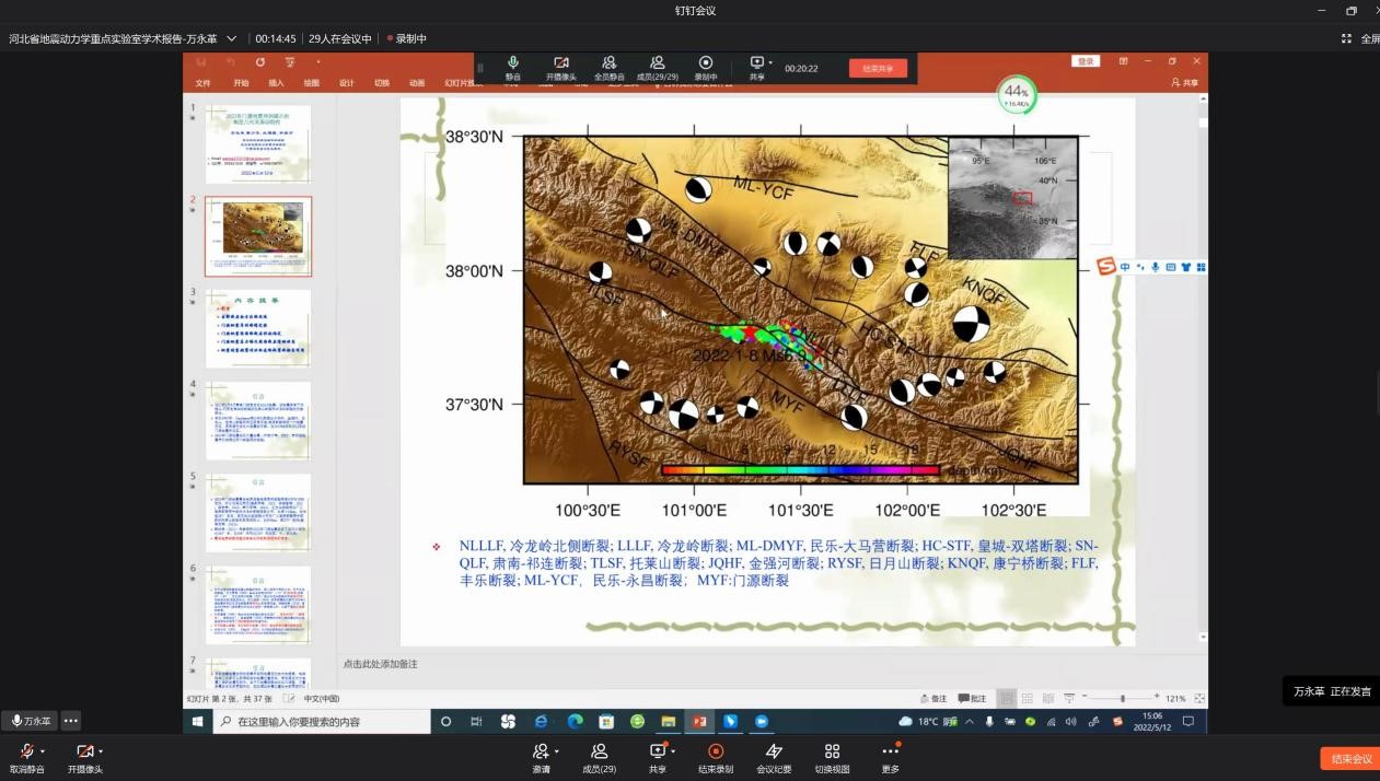 5月12日下午,QY千亿国际万永革教授利用钉钉线上会议为QY千亿国际师生做了题为“2022年门源地震序列揭示的断层几何及滑动性质”的学术报告。校内外部分师生参加了报告会,报告会由地球物理学教研室主任谭萍主持。