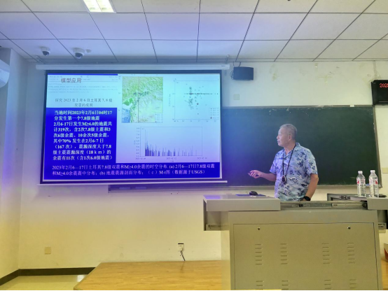 在“构造气体地球化学地震监测研究进展”报告中,杜建国研究员介绍了构造气体地球化学的研究领域、气体地球化学测量的依据、研究对象和检测方法,并通过大量的研究实例展示了构造气体地球化学研究在地震监测预测领域取得的最新进展。报告会现场气氛热烈,与会师生就引爆角砾岩、流体监测等问题与杜建国研究员进行了交流与探讨。
